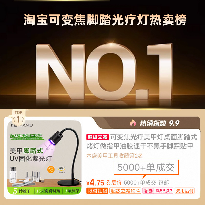 推荐理由:可变焦光疗美甲灯桌面脚踏式烤灯做指甲油胶速干不黑手脚踩贴甲片