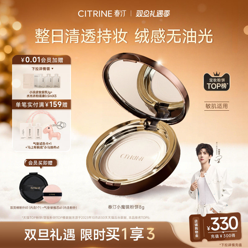 【圣诞礼物】春汀小魔镜蜜粉饼控油定妆持久不脱妆遮瑕磨皮送女友