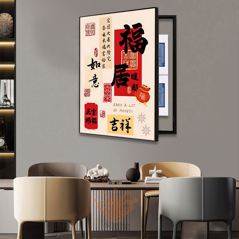 推荐理由:电表箱装饰画新中式寓意好配电箱遮挡多媒体电闸开关盒竖版挂画