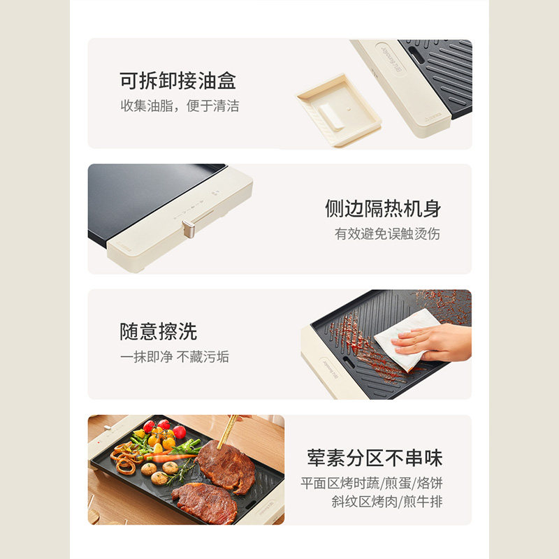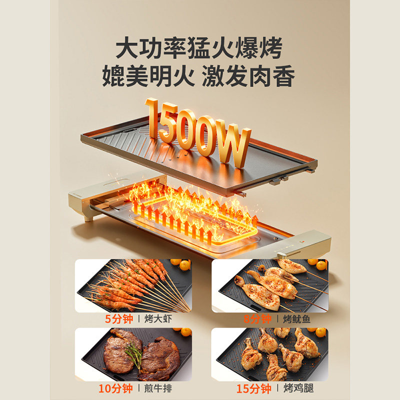 推荐理由:九阳电烤盘家用烤肉盘不粘电烧烤炉煎肉烤串机韩式铁板烧轻烟烤锅