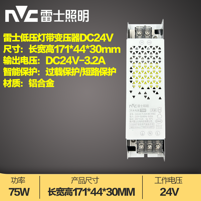 推荐理由:雷士照明LED灯带驱动器24V线型灯直流开关低压电源变压器75W150W