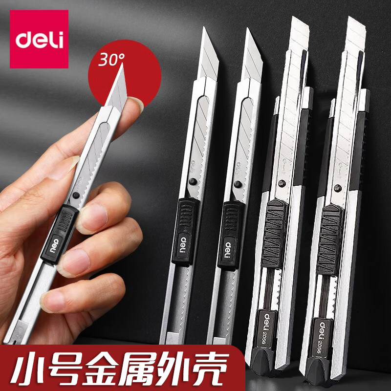 得力美工刀小号金属手工刀架钛合金不锈钢裁纸刀多功能壁纸刀美术生专用重型加厚美工刀全钢工业用小刀片30度