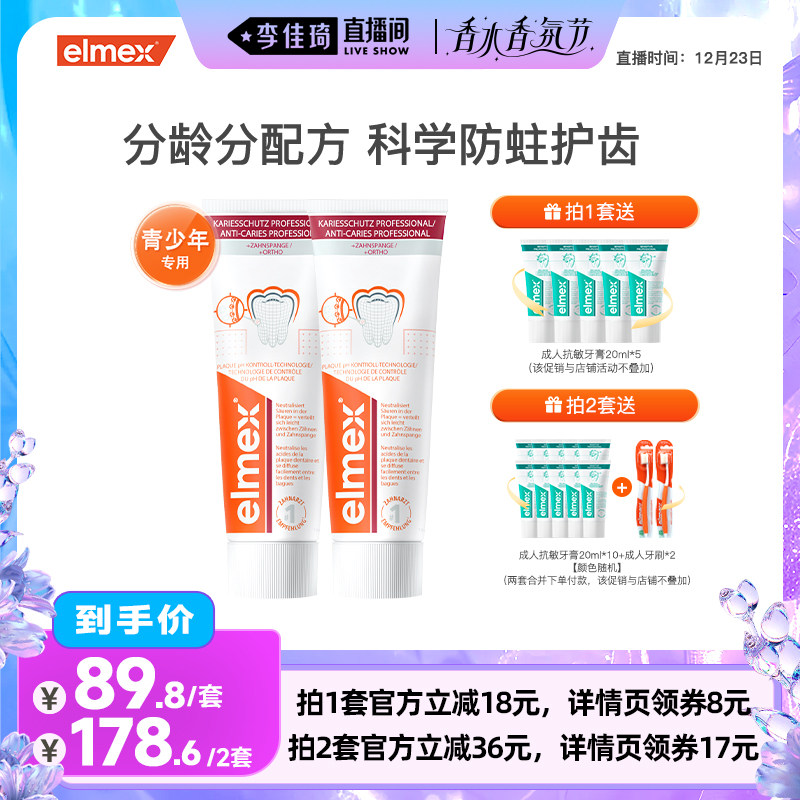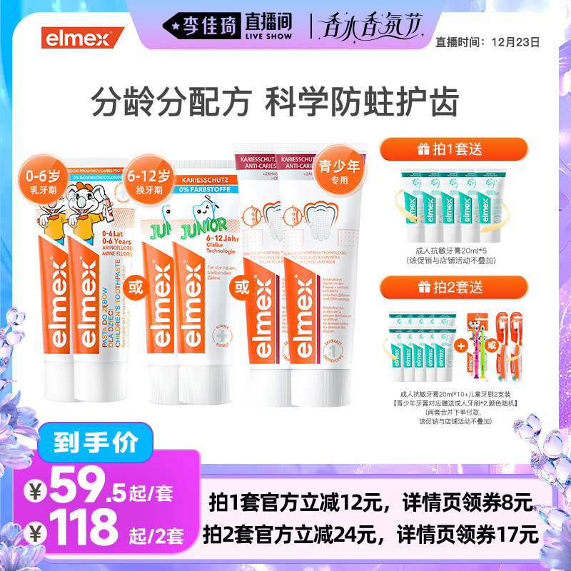 【李佳琦直播间香水香氛节】elmex艾美适含氟防蛀分龄儿童牙膏