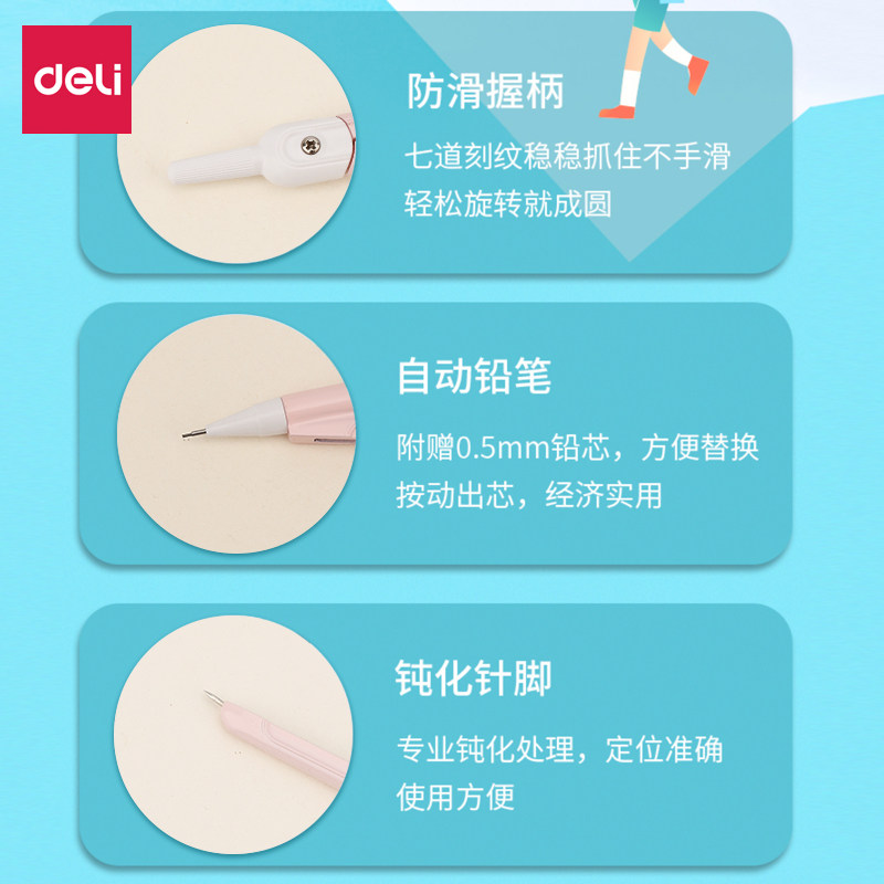 得力金属圆规学生用小学生樱花少女儿童圆规高颜值考试专用圆规初中生画图工具套装圆规收纳盒装带铅芯2B圆规