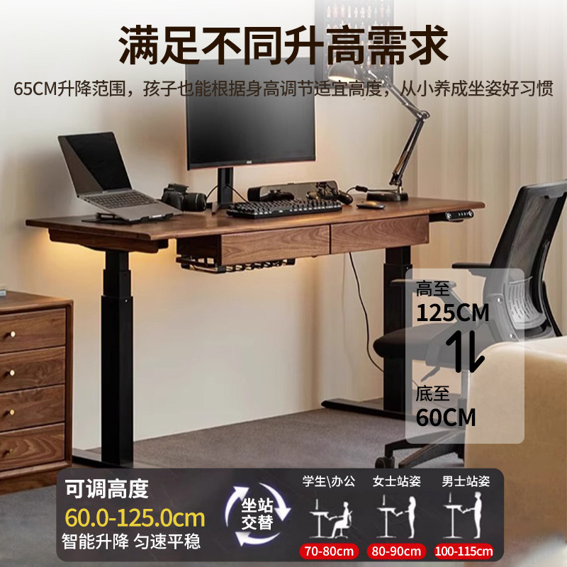 推荐理由:纯实木智能升降桌电动吧台儿童学习桌可调节手摇写字桌可定制桌面