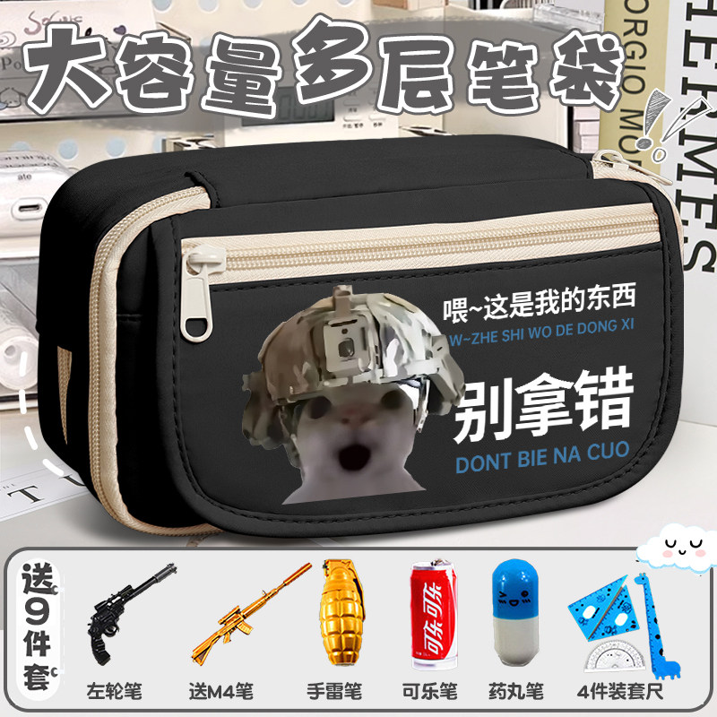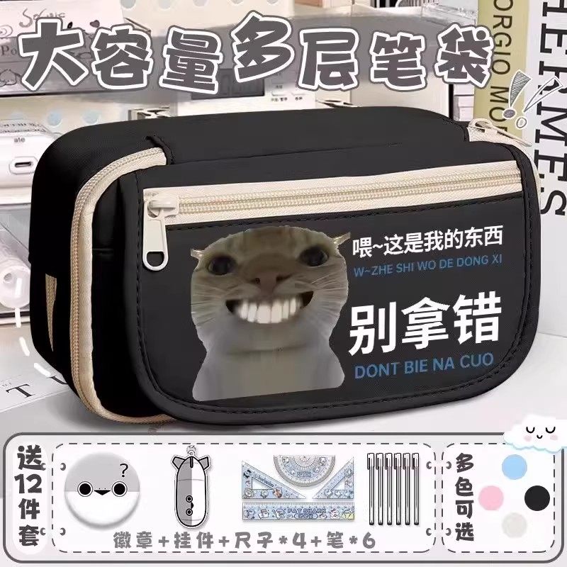 抽象笔袋男孩2025新款三角洲大大容量初中女生文具盒歪嘴小猫多层搞怪收纳抽象铅笔盒黑科技meme笔袋小学初中