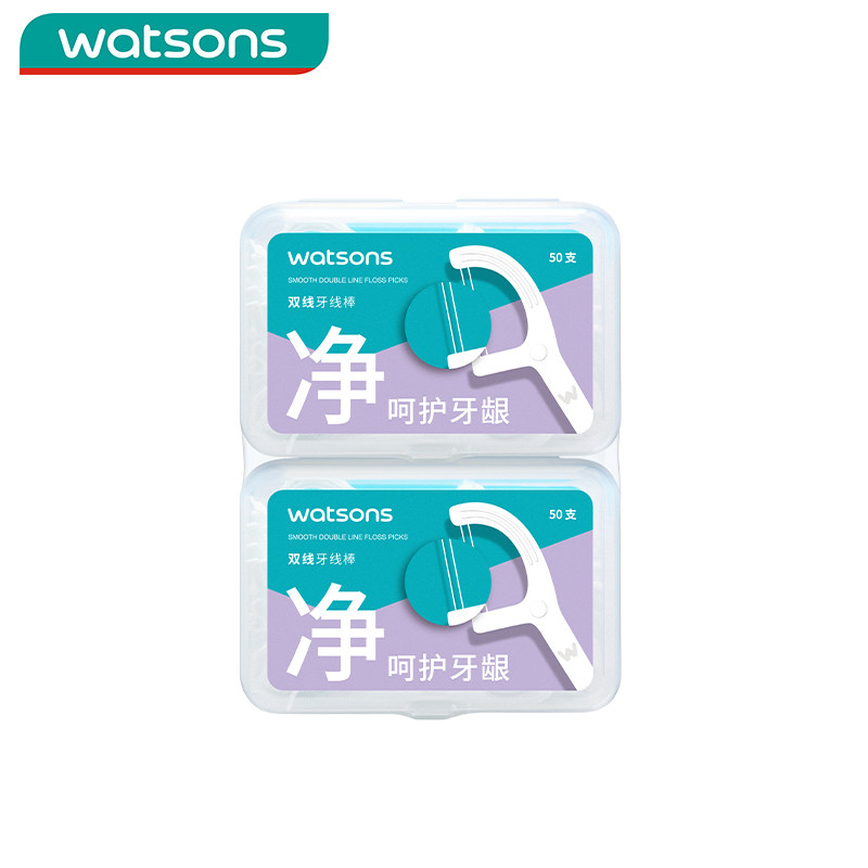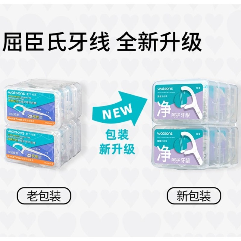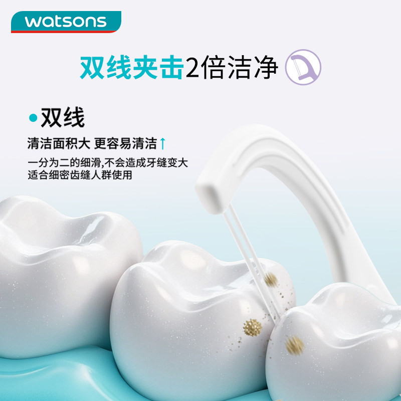 屈臣氏细滑深洁双线护理牙线棒50支X6盒牙签双倍清洁面新旧随机