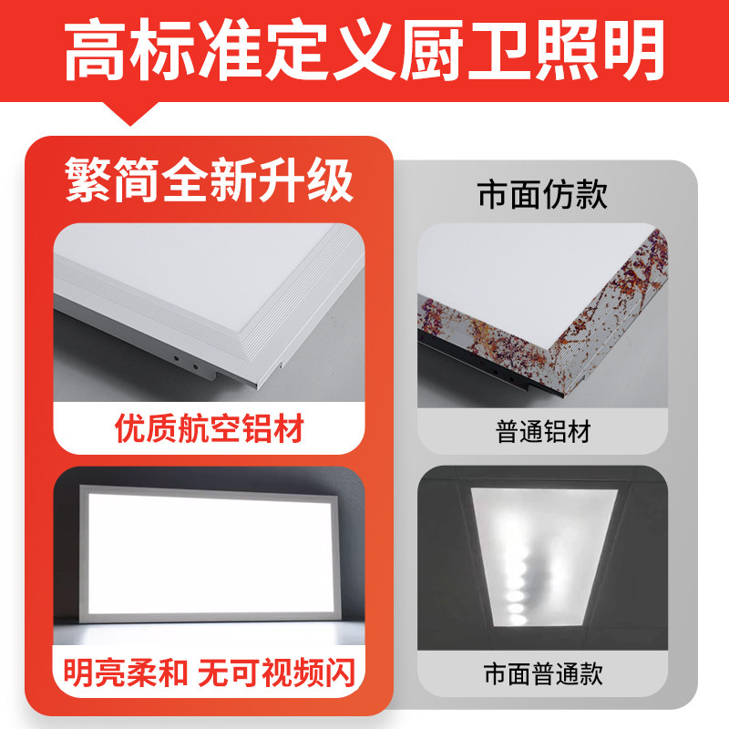 繁简集成吊顶灯led嵌入式厨房面板灯卫生间铝扣板厨卫柔光平板灯