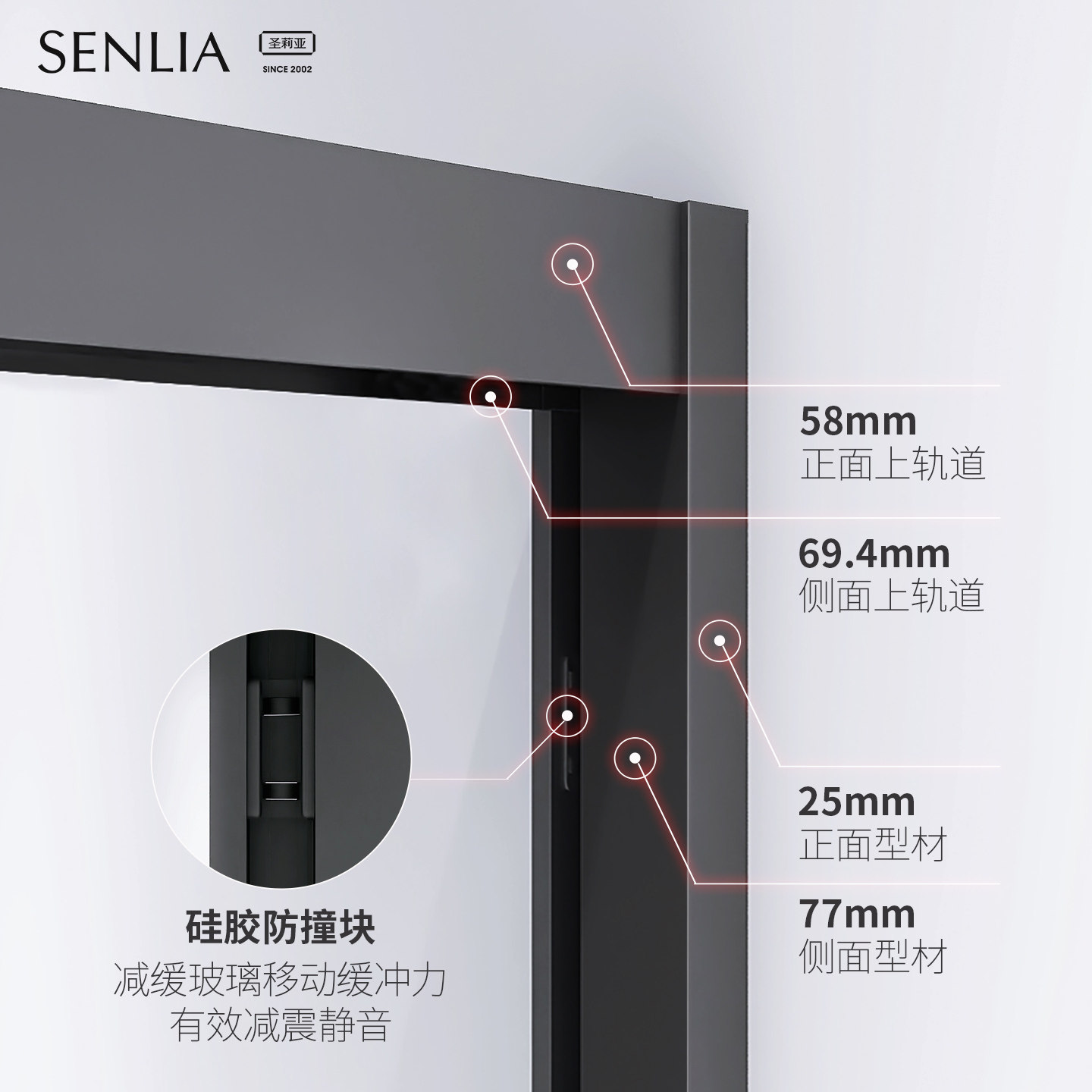 圣莉亚淋浴房隔断三联动玻璃门定制家用卫生间移门浴室浴屏推拉门