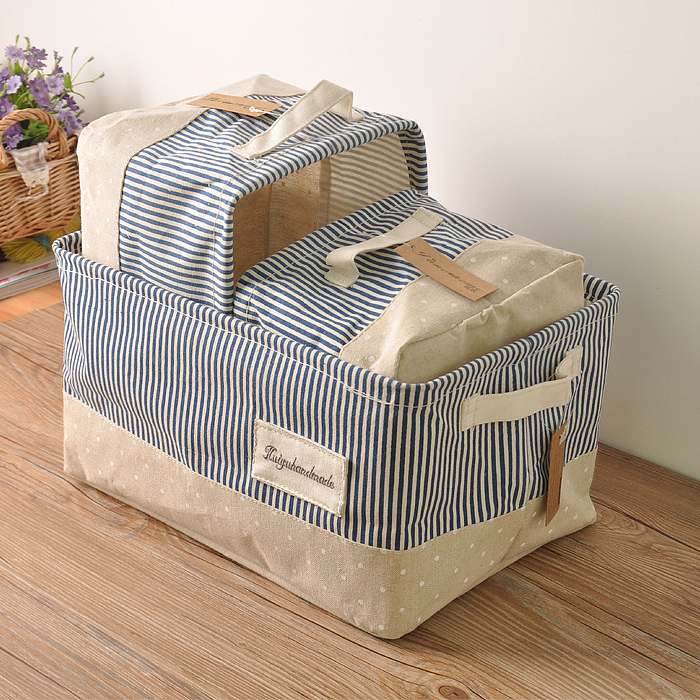 棉麻布ins零食收纳盒筐防水CD护肤品宿舍学生桌面整理方盒可折叠
