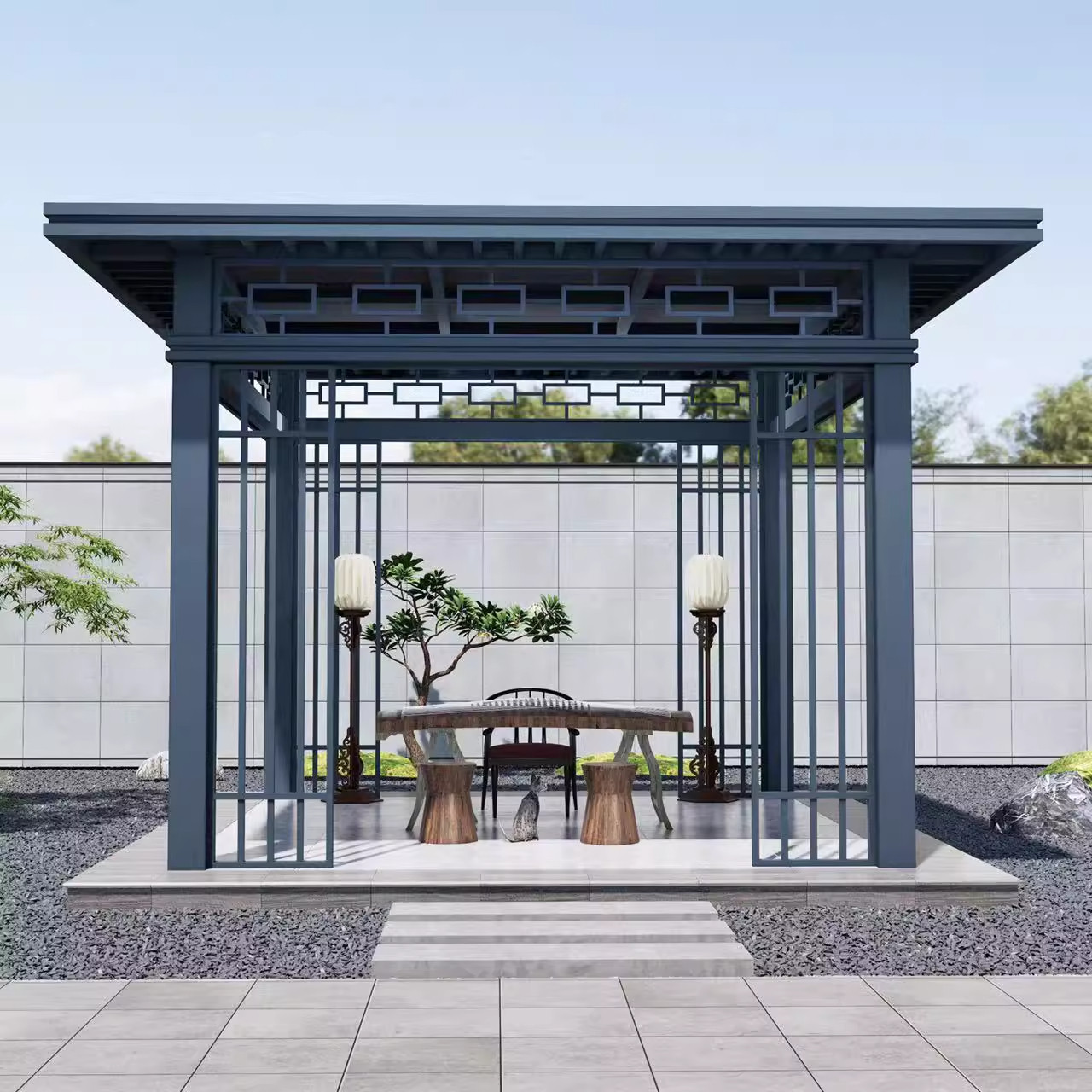 新中式铝合金凉亭别墅庭院花园亭子院子阳光房户外遮阳棚电动凉亭