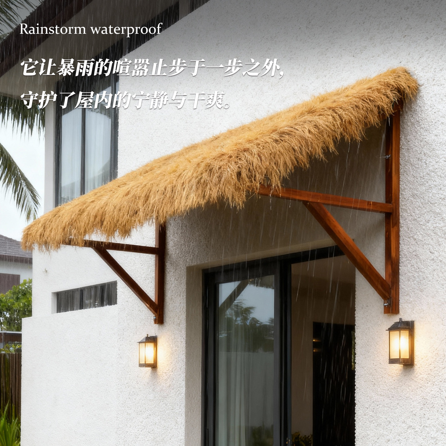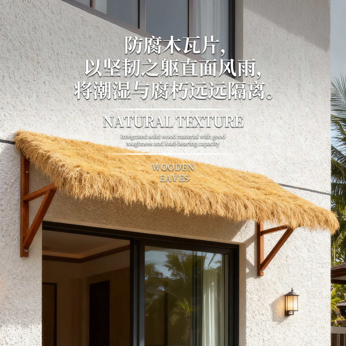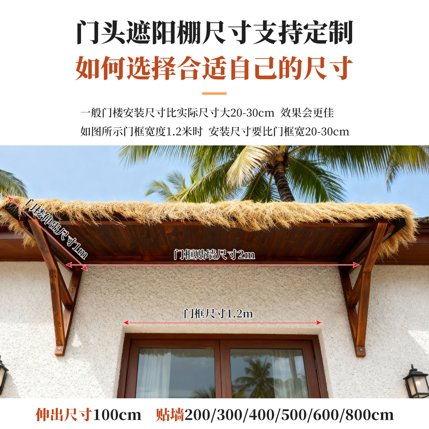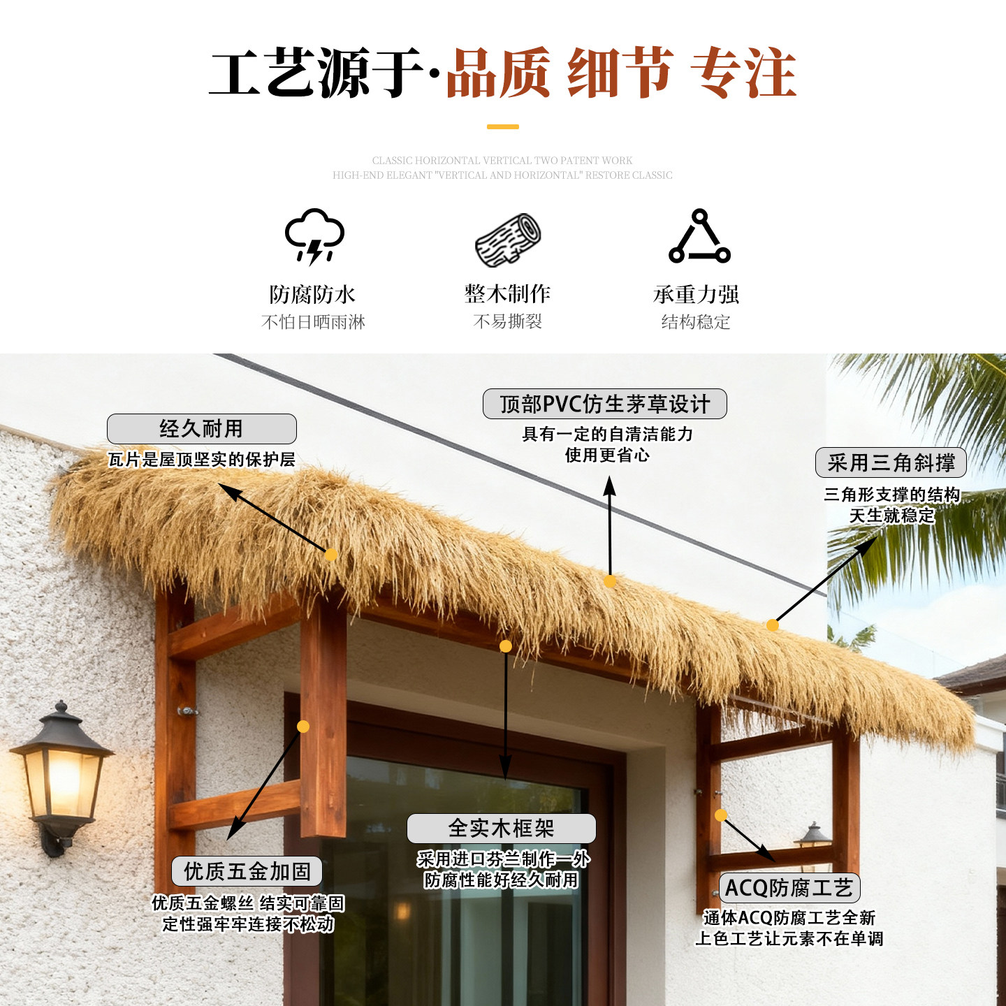 实木稻草遮阳篷庭院户外窗户阳台露台茅草雨棚毛草防腐木屋檐门头
