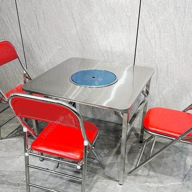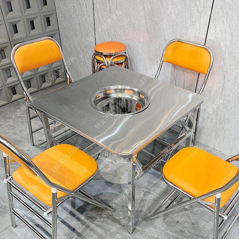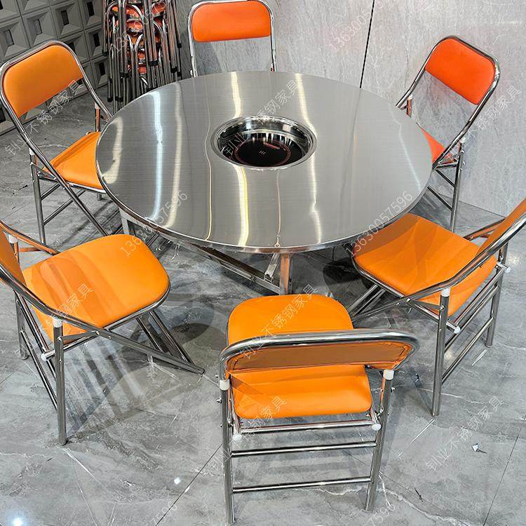 网红不锈钢火锅桌电磁炉韩式碳火炉圆折叠桌烤肉店大排挡桌椅组合