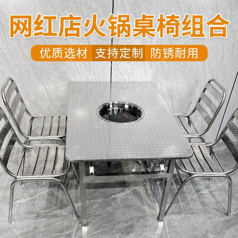 推荐理由:网红不锈钢火锅桌电磁炉韩式碳火炉圆折叠桌烤肉店大排挡桌椅组合