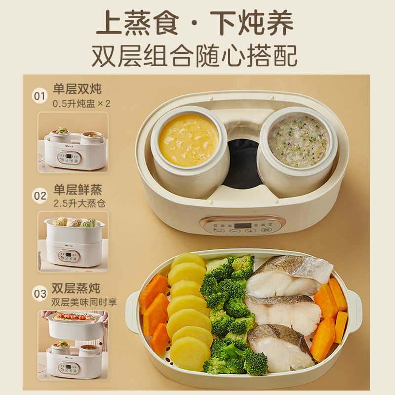 推荐理由:1L巧容量 上蒸下炖 预约定时