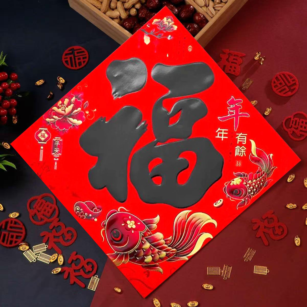 2026年福字新年贴纸装饰过年春节农村生肖铜版纸福字门贴加厚窗贴