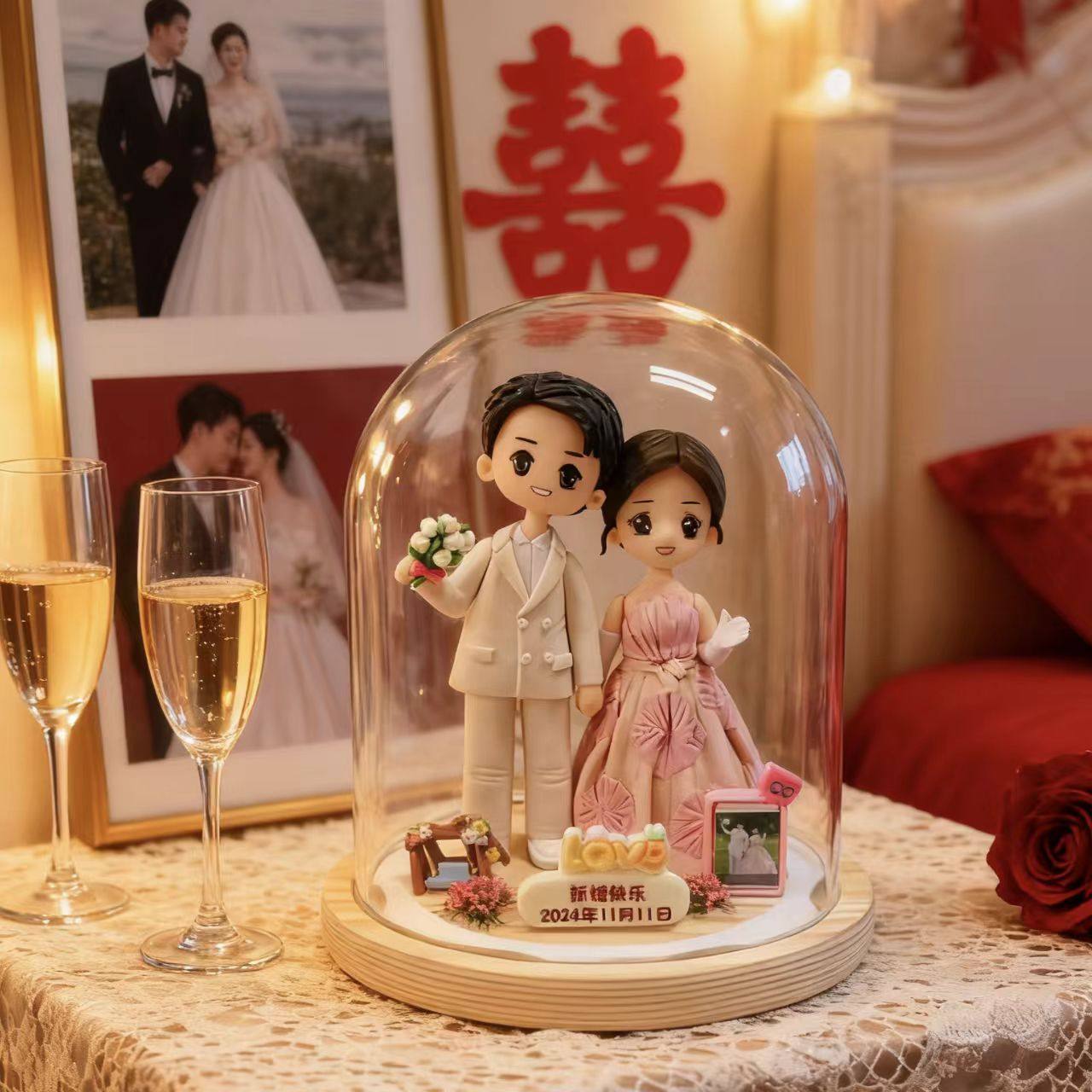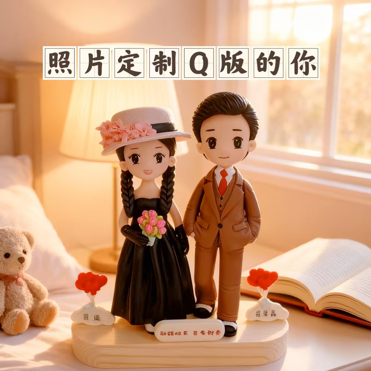 双人情侣款照片定制软陶人偶石塑粘土仔小人偶结婚周年婚礼品手办