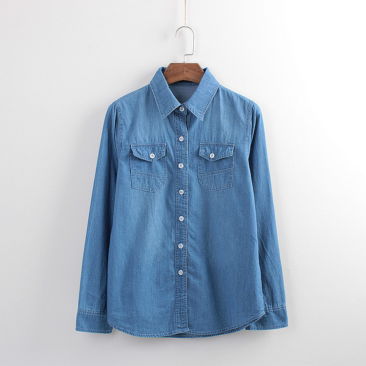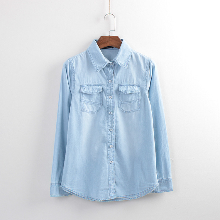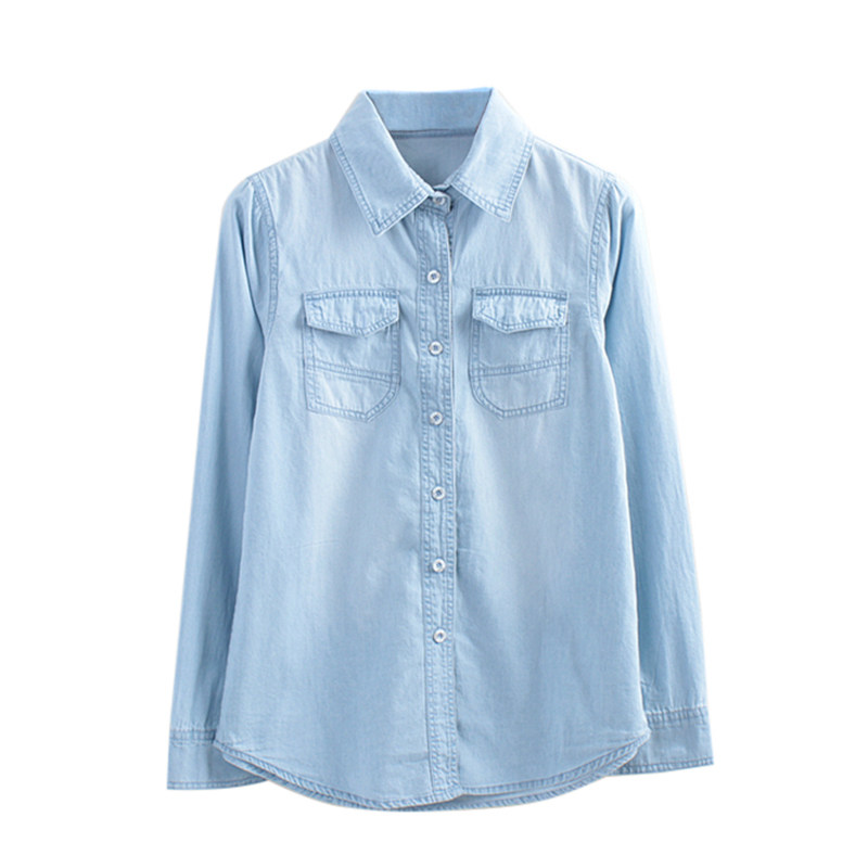 日系文艺小清新基础款全棉长袖牛仔衬衫女学生打底衫上衣韩范宽松