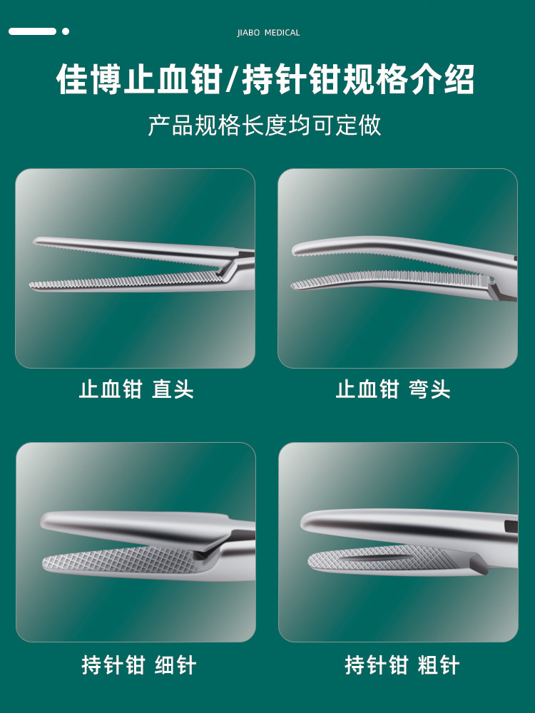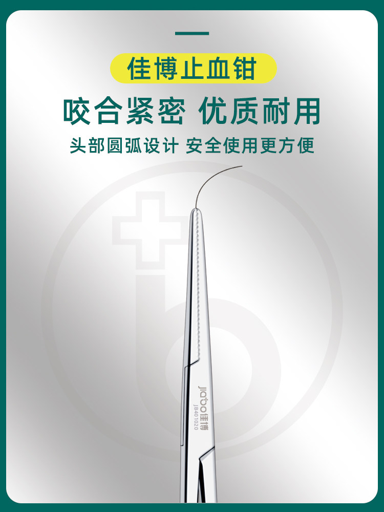 佳博牌医用止血钳手术持针钳微血管钳子金柄止血钳不锈钢直头弯头
