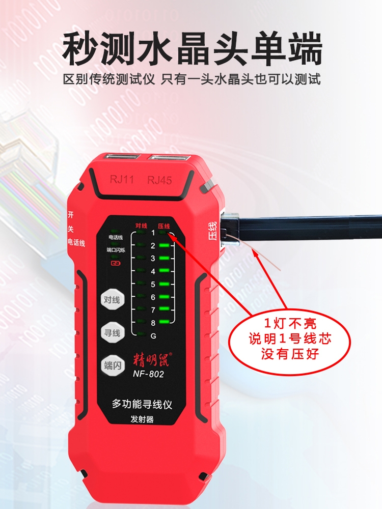 推荐理由:充电精明鼠NF802寻线仪网络测试仪网线检测器抗干扰POE巡线测线仪