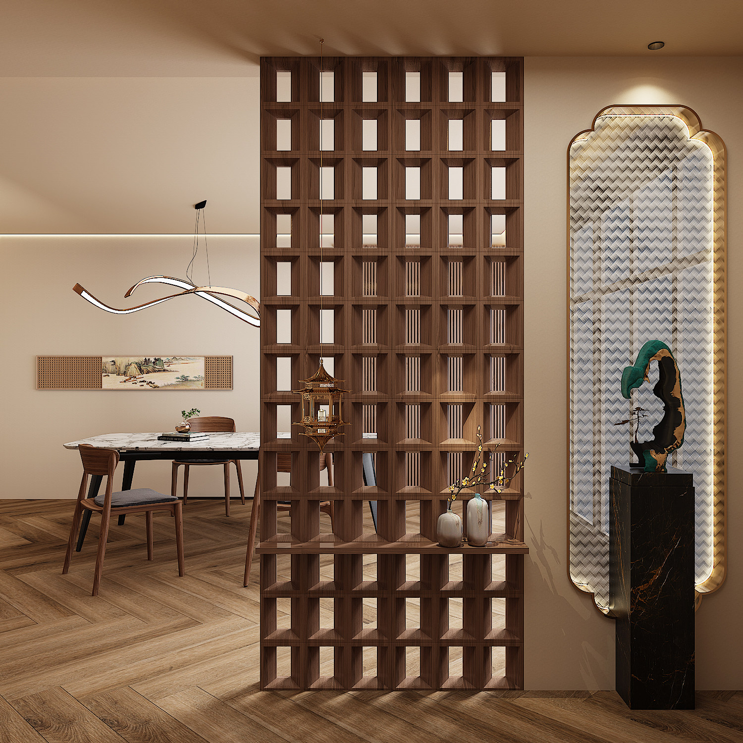中古实木隔断法式复古客厅玄关屏风隔断进门入户顶天立地实木隔断