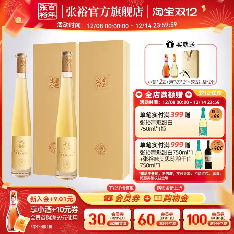 【张裕官方】黄金冰谷金钻级冰酒甜型冰葡萄酒双支礼盒旗舰店正品