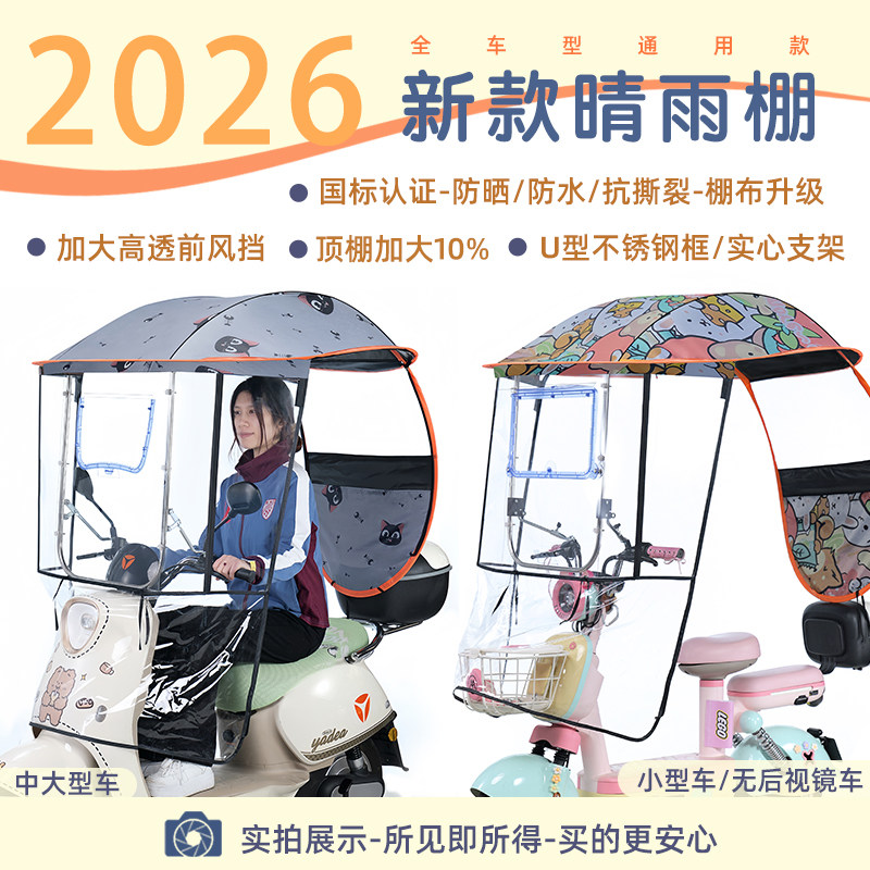 推荐理由:新款电动车电瓶车遮雨棚加大专用挡风罩可拆卸一体两轮小踏板摩托