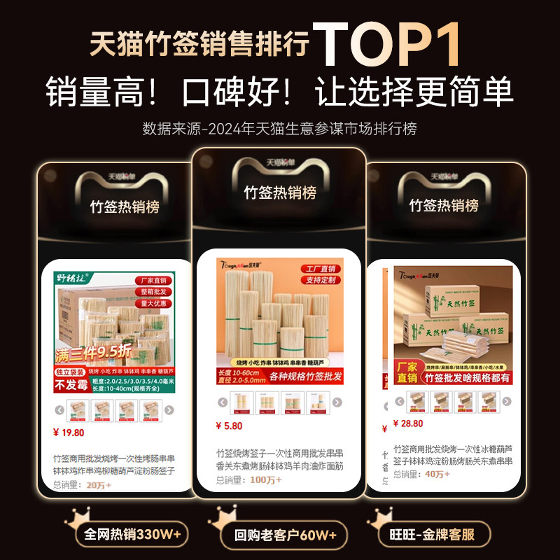 推荐理由:竹签烧烤签子商用批发一次性羊肉串油炸串关东煮小吃冰糖葫芦烤肠