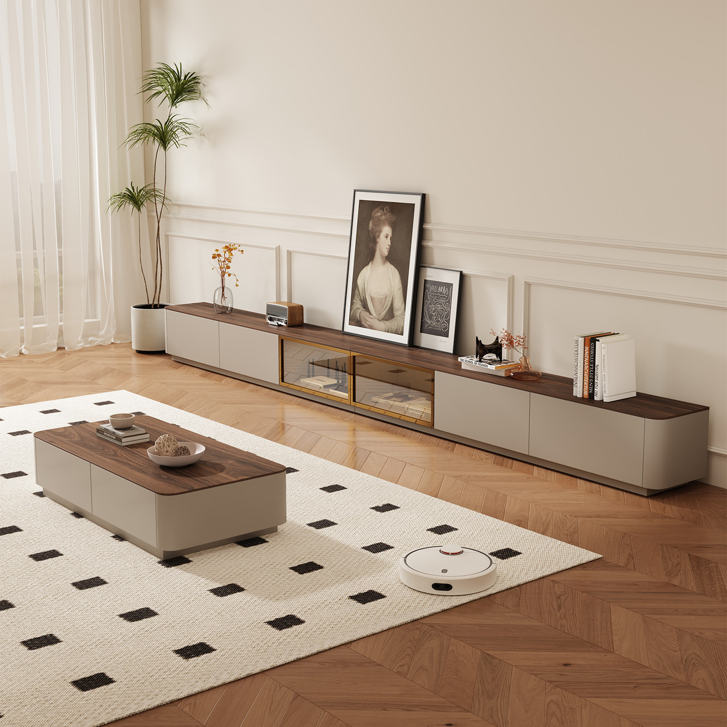 电视柜实木茶几组合客厅家用2025新款落地储物柜子奶油风电视机柜