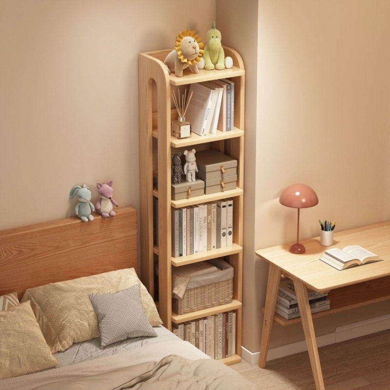 实木靠墙书柜家用储物柜落地简易书架一体卧室置物架儿童客厅收纳