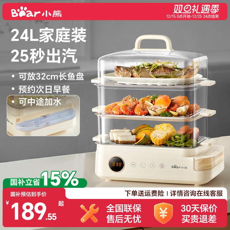 小熊电蒸锅多功能家用大容量保温定时预约蒸汽锅不锈钢早餐机神器
