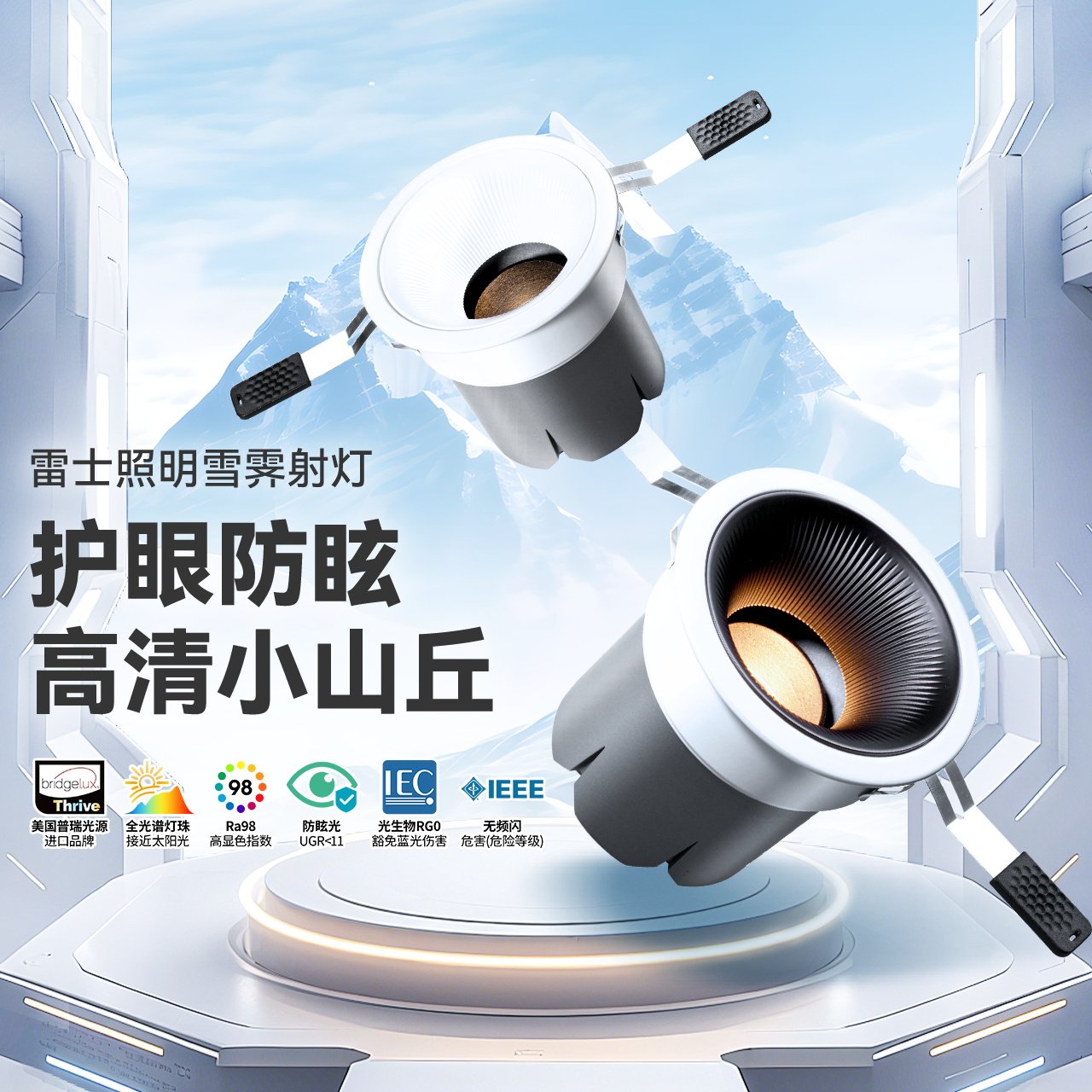 雷士照明射灯嵌入式防眩护眼全光谱36°小山丘筒射灯无副光斑雪影