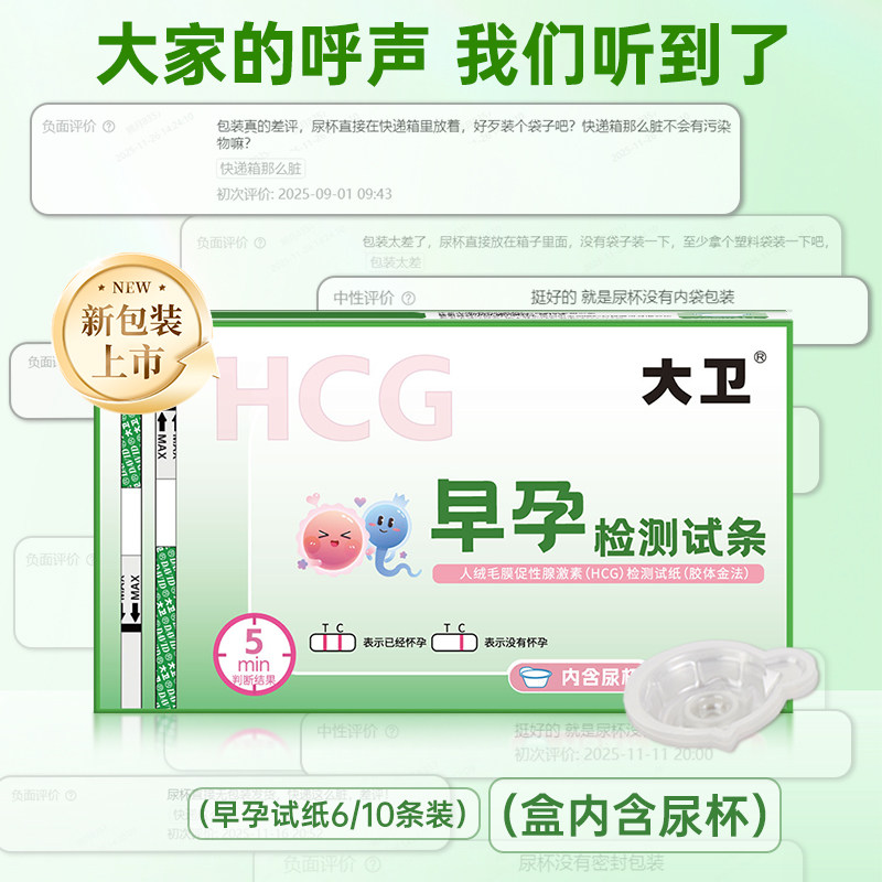 大卫验孕棒早早孕试纸精度测孕检测高怀孕验孕试纸次日达精条笔准
