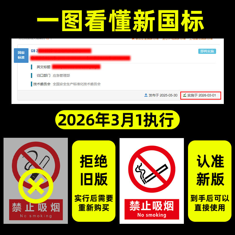 2026新国标安全标识牌安全标识贴纸警示标志禁止吸烟提示牌施工现场建筑工地工厂车间区域安全警示牌铝板墙贴