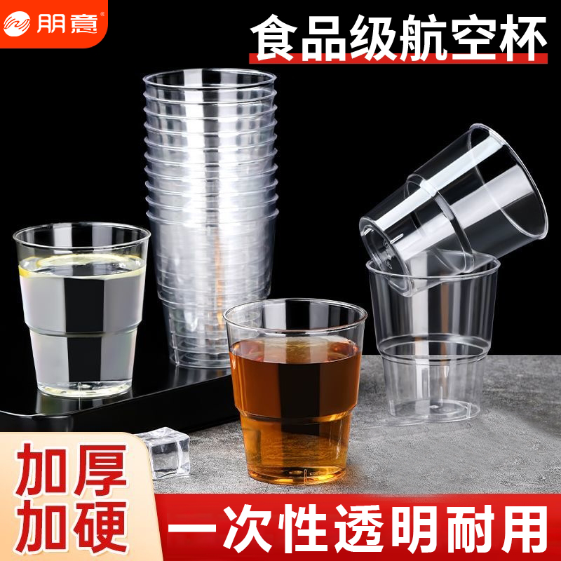 一次性杯子硬质塑料杯家用航空杯加厚加硬透明食品级一次用水杯子