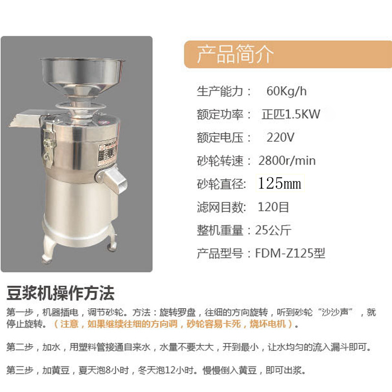 推荐理由:125型不锈钢商用磨浆机浆渣分离豆浆机大型豆腐机电动免过滤早餐