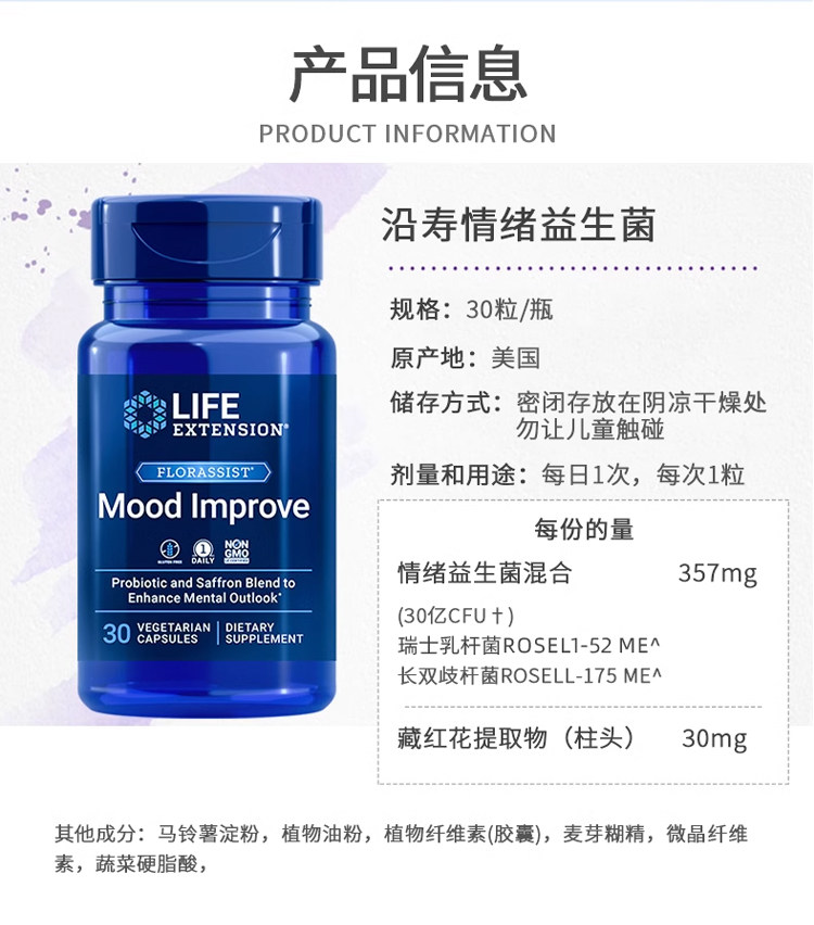 推荐理由:沿寿情绪平衡益生菌有机藏红花植物提取胶囊舒缓压力情绪稳定睡眠
