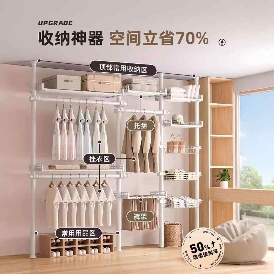 小红书热推轻奢步入式衣帽间卧室免打孔衣帽架自由组合落地式衣柜