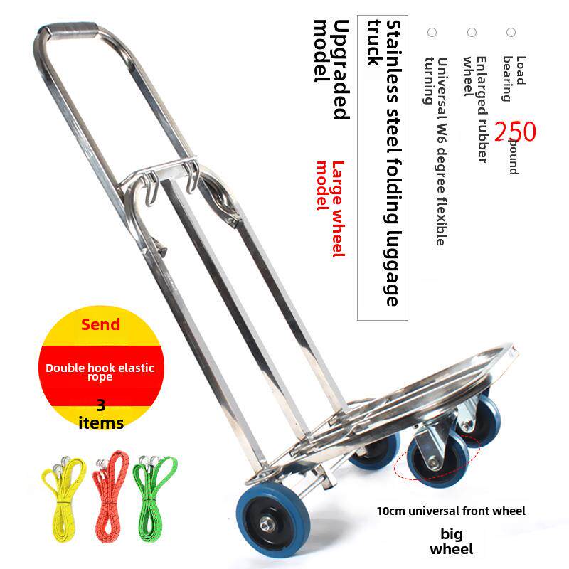 新款不锈钢四轮万向折叠行李车加大橡胶轮载重王手推车便携购物车