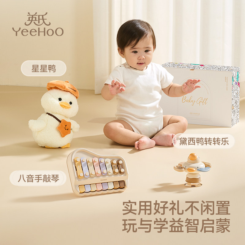 英氏宝宝玩具礼盒手敲琴音乐启蒙婴儿复读鸭玩偶益智早教周岁礼物