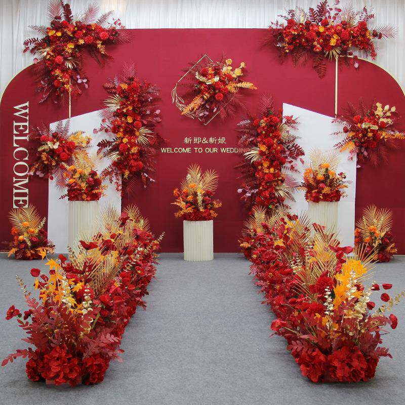 整套红色系婚庆仿真花舞台t台迎宾区装饰地排花路引花排中式婚礼