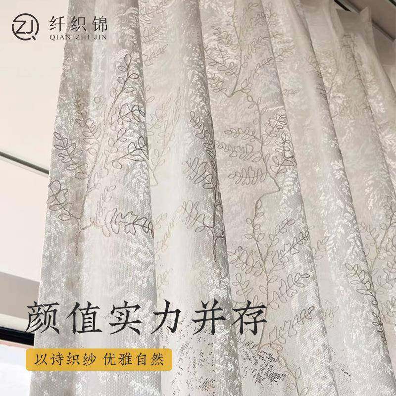JYM飘窗纱帘夏季防晒隔热油窗帘透光不人奶透浮雕镜面色纱阳台遮