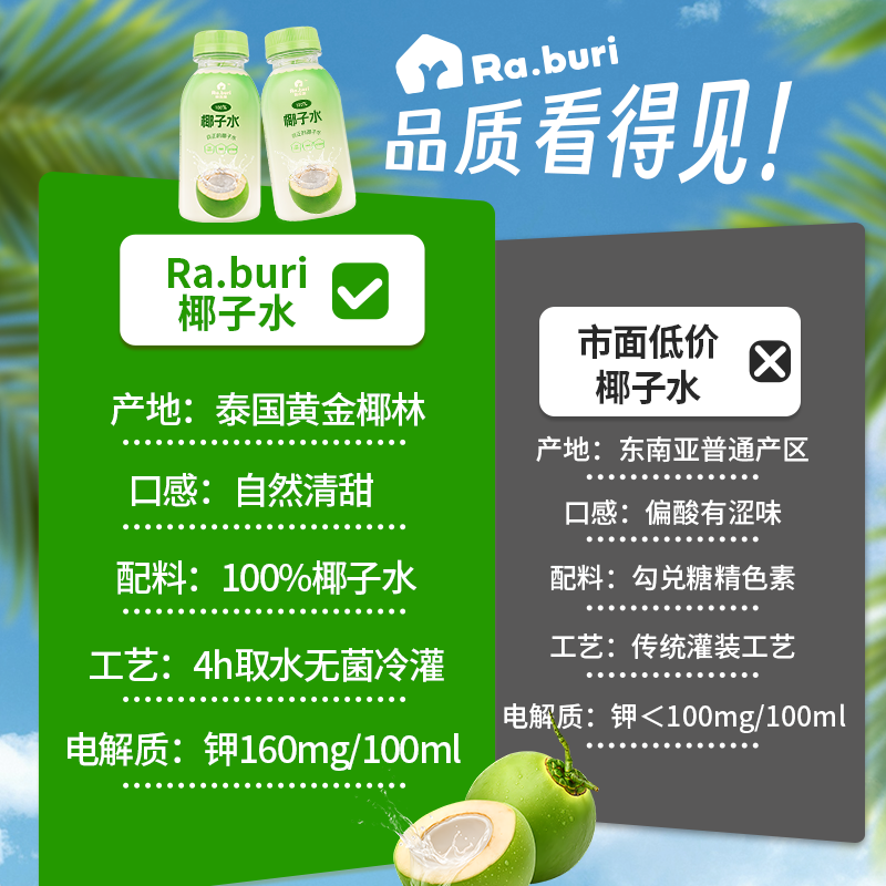 Ra.buri叻丕里泰国进口椰子水孕妇可喝椰汁椰青水补水电解质饮料