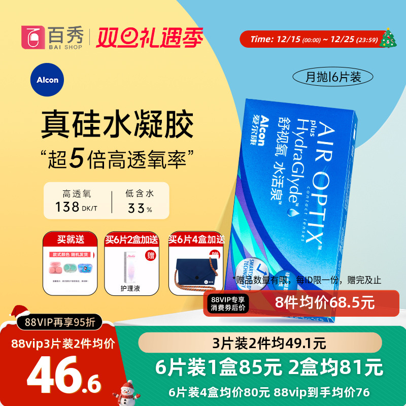 爱尔康视康隐形近视眼镜水活泉月抛盒6片硅水凝胶舒适氧官方正品
