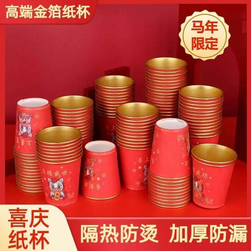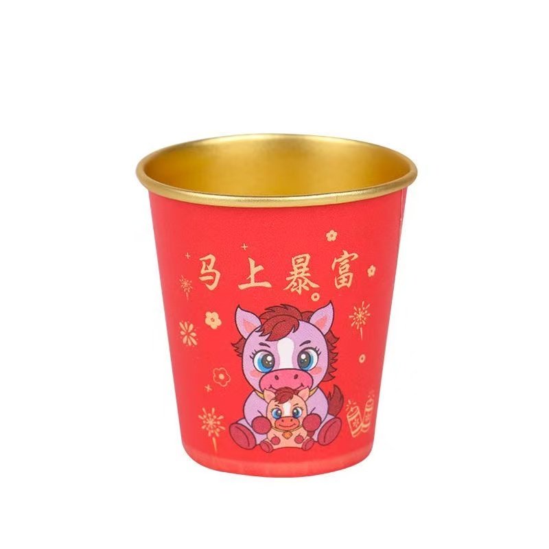 推荐理由:2026年新款马年金箔纸杯加厚材质无异味喜庆贺岁杯春节聚会用品