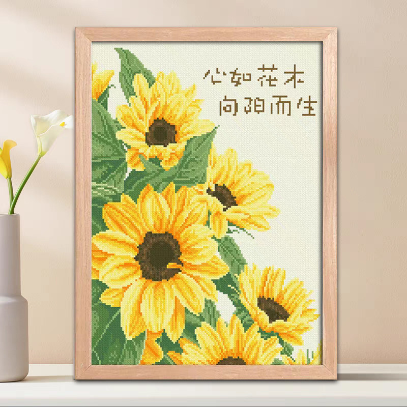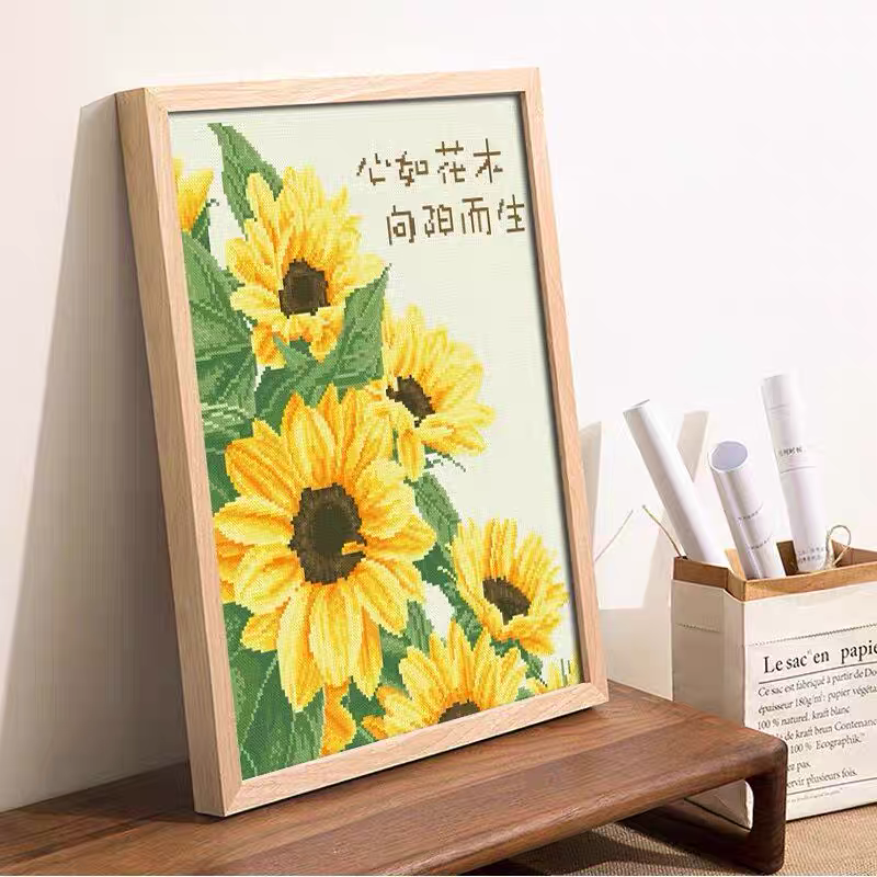 带框向日葵钻石画满钻2025新款卧室砖石画手工粘贴点钻十字绣摆台