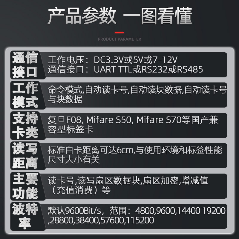 推荐理由:厂家直销IC射频卡读写器模块RFID高频电子标签S50读卡识别感应式