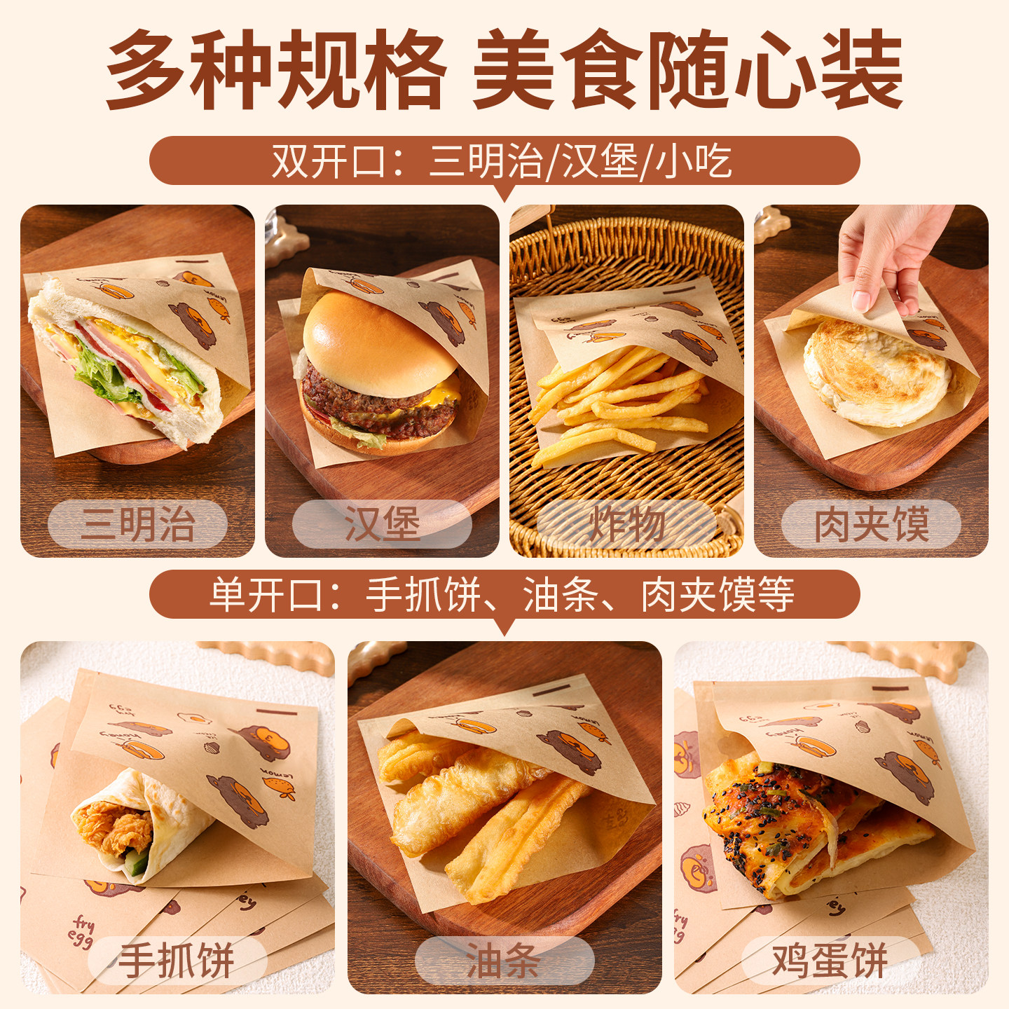 三明治的包装纸专用食品级汉堡防油纸袋自封可微波饭团手抓饼文盒