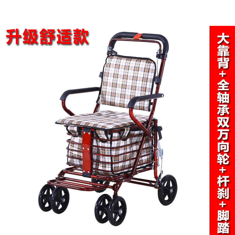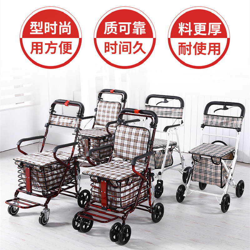 老年代步车可折叠老年购物车可坐四轮买菜助步可推小拉老人手推车