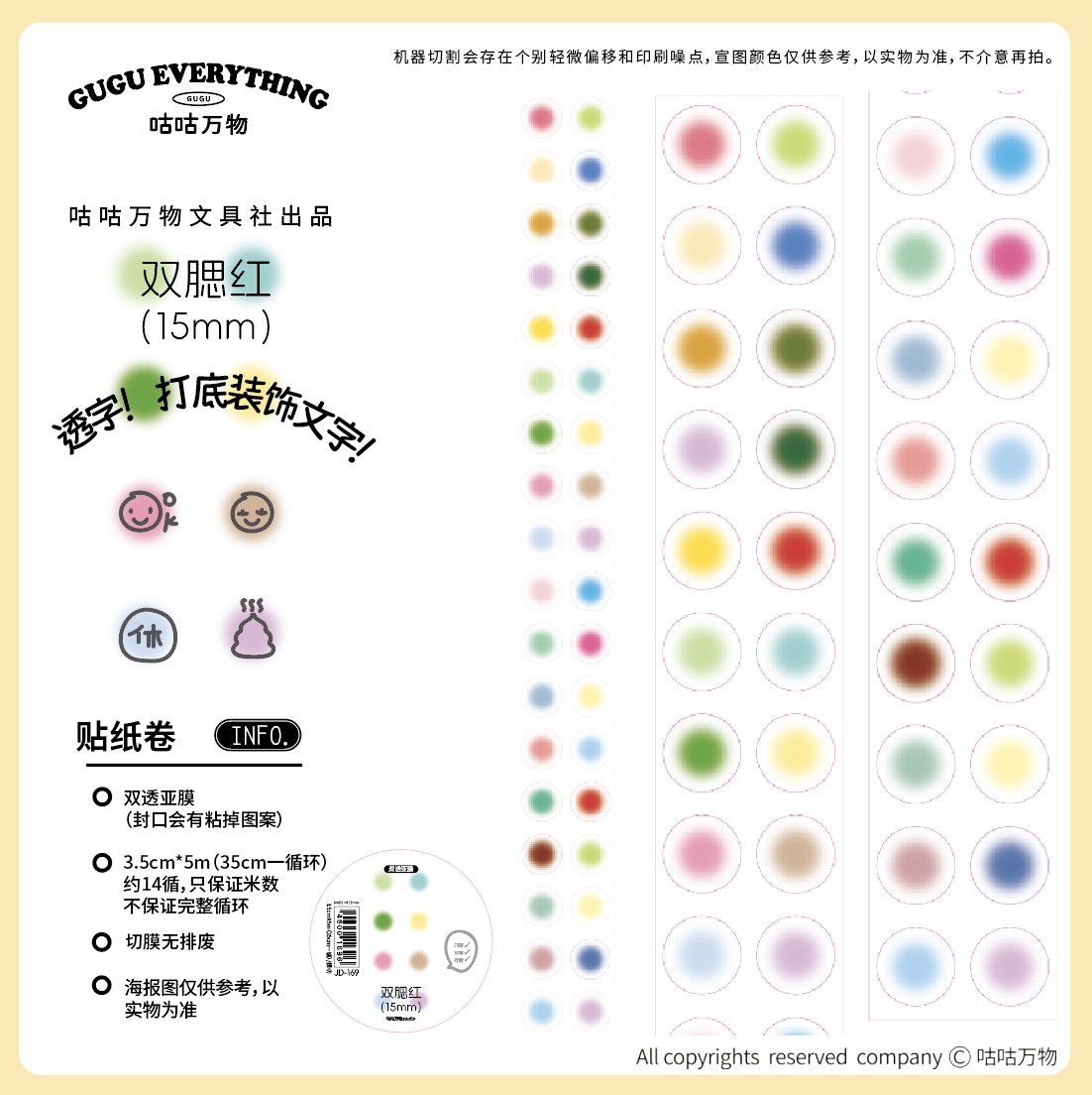 推荐理由:(现货)咕咕万物双腮红渐变柔光圆点标记打底手帐pet切模贴纸